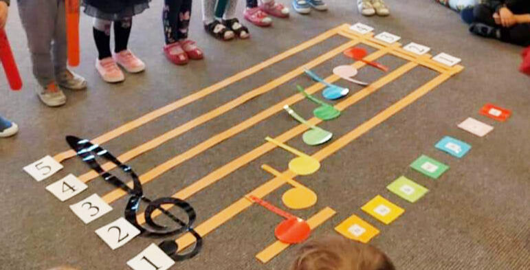 Warsztaty zapisu nutowego poprzez wykorzystanie animacji dla dzieci i dobrą zabawę. Mają na celu poznanie wysokości dźwięków i notacji różnych znaków muzycznych. Dzieci uczą się nazw nut przy użyciu kolorów.